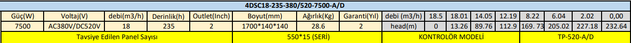DC POMPA - 4 İNÇ - AC-DC - 7500 WATT - 18 TON - HMAX: 235 MT - OUTLET: 2