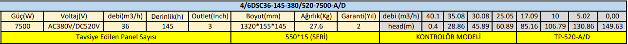 DC POMPA - 4-6 İNÇ - AC-DC - 7500 WATT - 36 TON - HMAX: 145 MT - OUTLET: 2