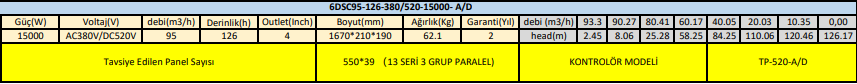 DC POMPA - 6 İNÇ - AC-DC - 15000 WATT - 95 TON - HMAX: 126 MT - OUTLET: 2