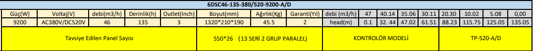 DC POMPA - 6 İNÇ - AC-DC - 9200 WATT - 46 TON - HMAX: 135 MT - OUTLET: 2